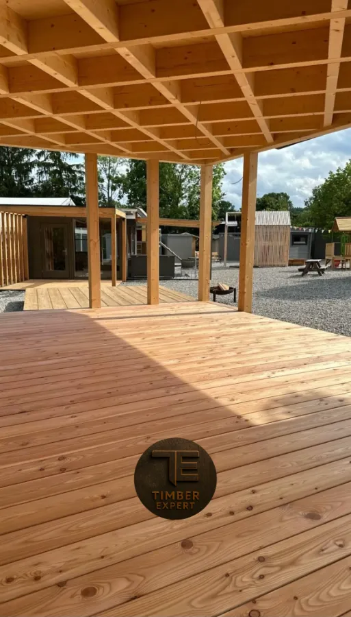 Палубная доска из лиственницы — спокойная поверхность для террас, патио, дорожек, общественных настилов.