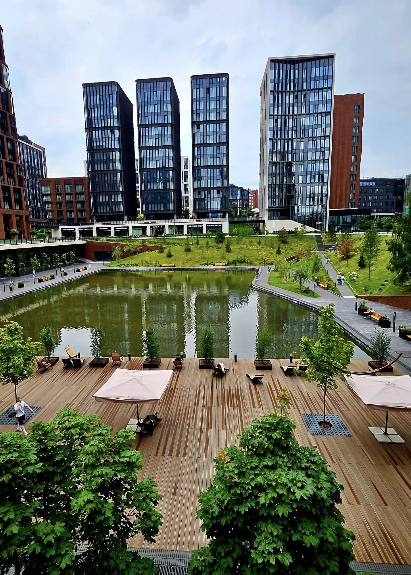 Террасная доска из сибирской лиственницы в Москве — редкий пример осознанного инженерного решения в общественном пространстве. В проекте «Садовые кварталы» более 600 м² натурального деревянного настила у воды работают в условиях высокой влажности, перепадов температур и интенсивной проходимости. Ниже — профессиональный разбор, почему именно лиственница, профиль «вельвет» и короткие длины доски оказались физически и физиологически оправданным выбором для городской среды и чем это принципиально отличается от применения ДПК.